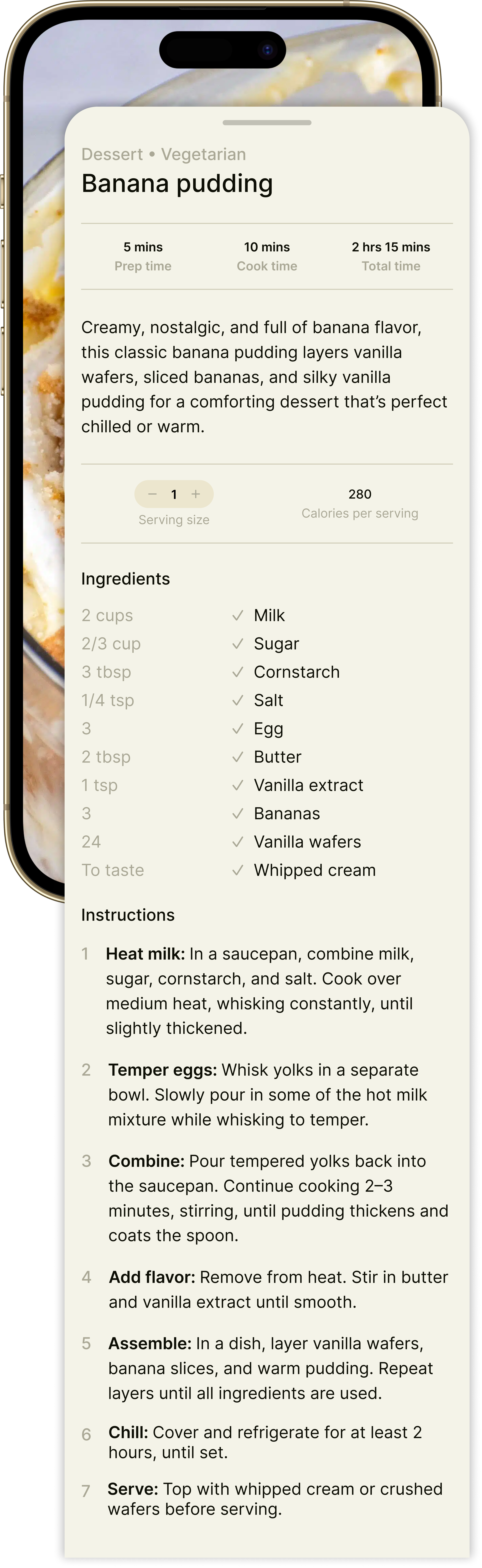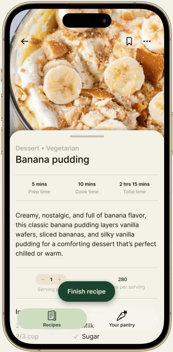 To guide the design of our pages, we conducted research into existing design patterns for displaying recipes, adding item flows, and scanning items using the camera on mobile devices.